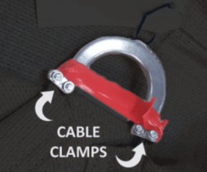Image of cable clamps showing where the tension cable wraps back to itself.